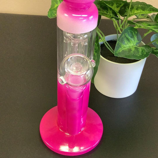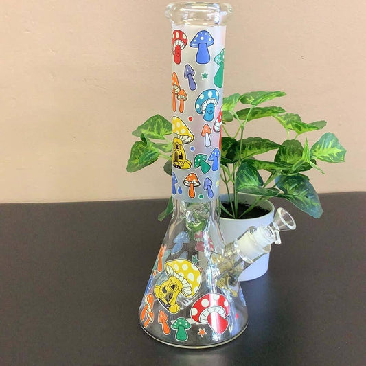 13.5" Clear W/ Glow in The Dark Multicolored Mushrooms Glass Water Pipe Heavy Duty