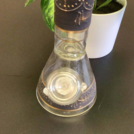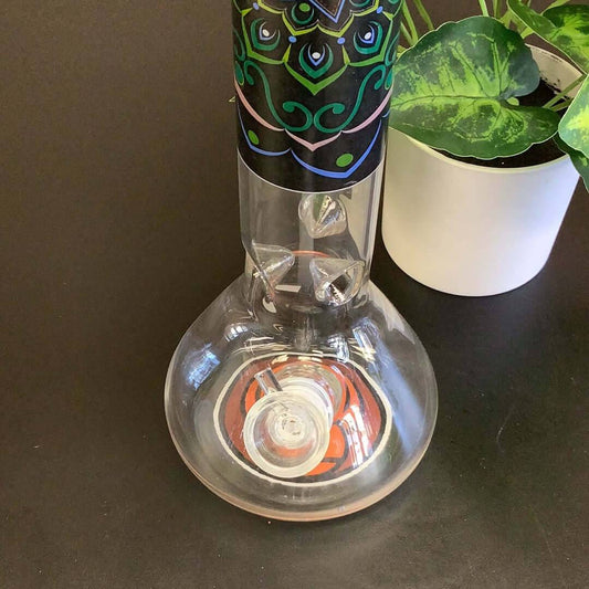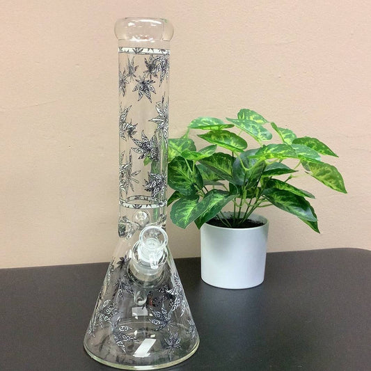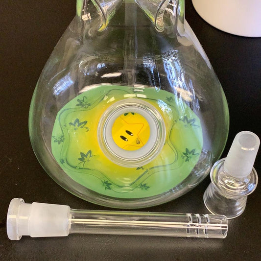 Tribal Canna Leaf Glow in the Dark Glass Beaker Water Pipe Heavy Glass W/ Bowl