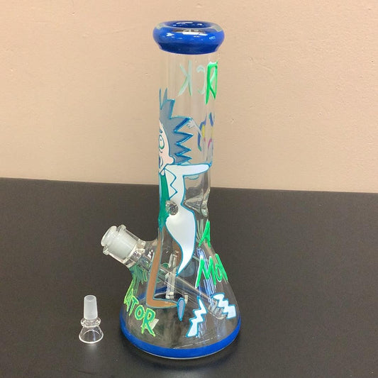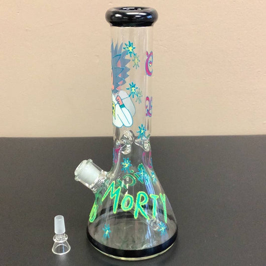 13.5" Clear Multicolored Glow in the Dark Rick & Morty Glass Water Pipe
