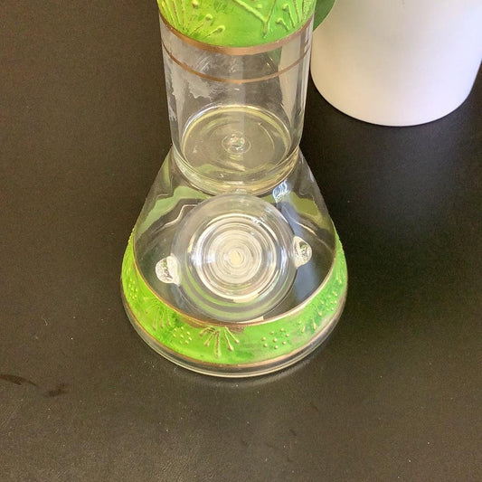 14.5" Clear W/ Green & Gold Trim Glass Water Pipe W/ Bowl Heavy Duty Glass