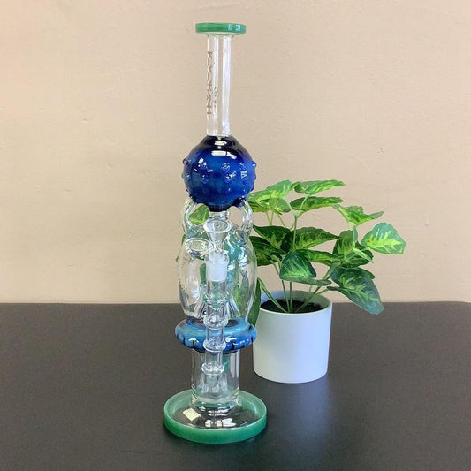 16" “Lookah Glass” Clear W/ Blue & Green Trim Glass Water Pipe W/ Percolator & Bowl