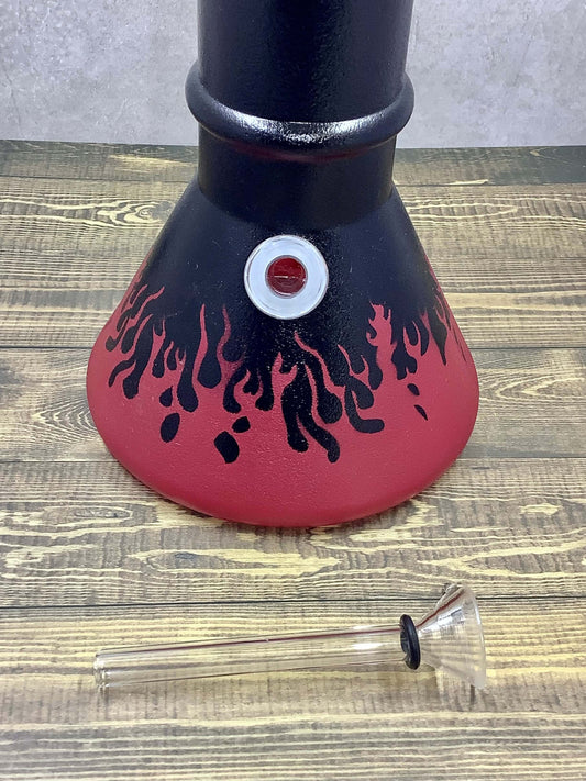 12" Black W/ Red Flame Glass Water Pipe W/ Bowl Heavy Duty Glass