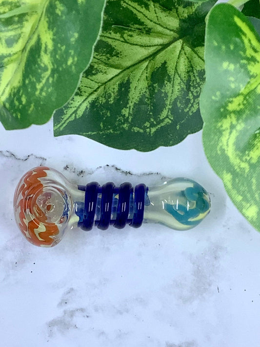 3.5" Clear W/ Orange & Blue Zig Zags Glass Bowl & Carb