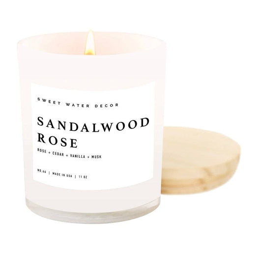 Sandalwood Rose Soy Candle | Glass Jar + Wood Lid