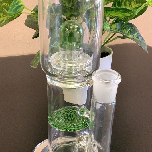 14.5" Clear & Green Trim Glass Water Pipe W/ Honeycomb & Bowl