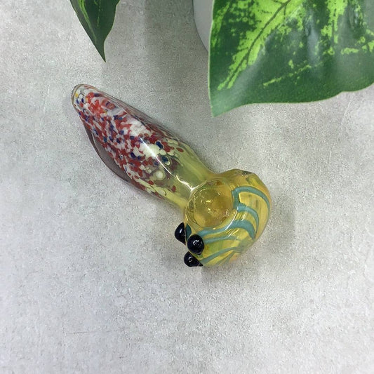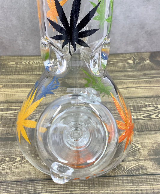9.5" Clear Glass W/ Multicolored Canna Leaves Water Pipe W/ Bowl & Downstem