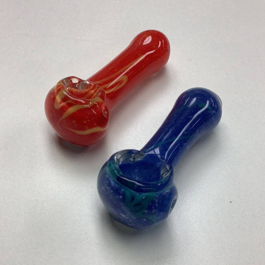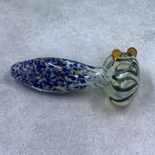 4" Clear W/ Blue Specs In Handle & Green Swirls in Bowl Green Knobs Glass Bowl And Carb
