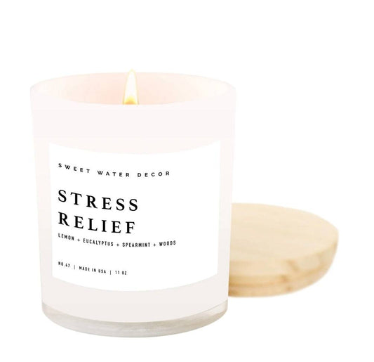Stress Relief Soy Candle | Glass Jar + Wood Lid