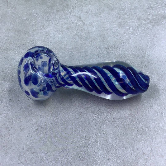 3.5" Clear W/ Blue Swirl Throughout Glass Bowl and Carb