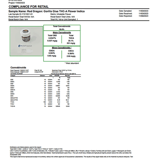 Red Dragon THC-A 3.5G Flor - Gorilla Glue - Indica