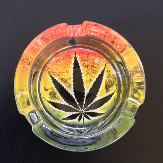 Cenicero de cristal con diseño de planta humeante rasta y jamaicana