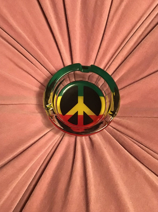 Cenicero de cristal con signo de la paz que brilla en la oscuridad